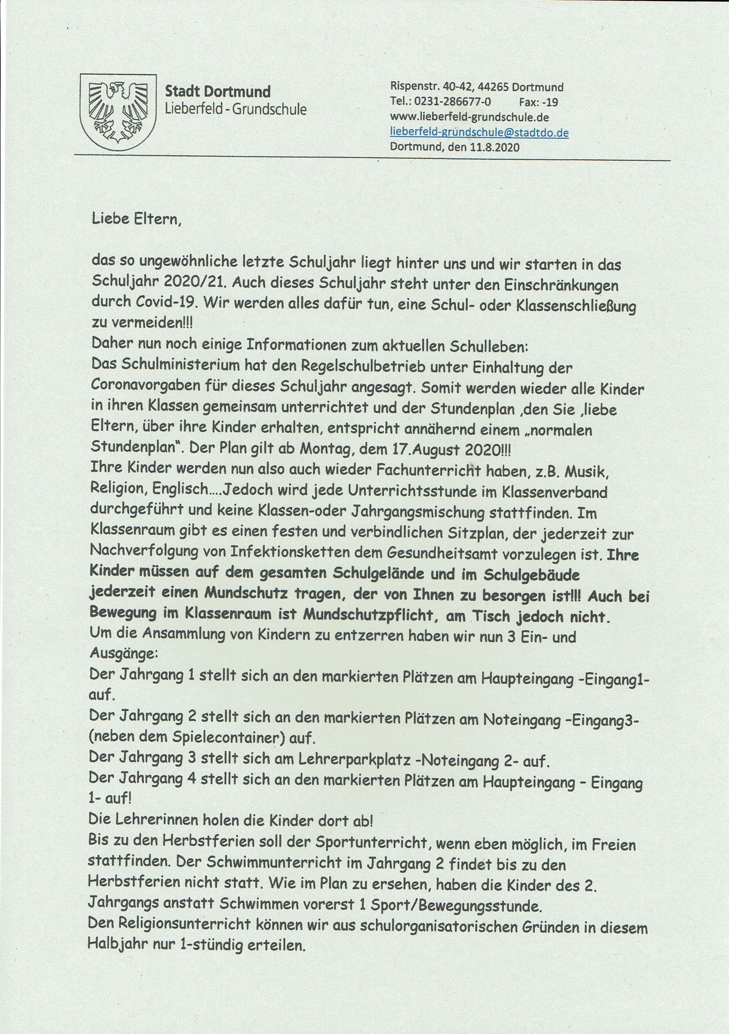 sollten Sie durch die Neuerung des Betreungserlasses (Einen Anspruch auf Notbetreuung haben alle Beschäftigten unabhängig von der Beschäftigung des Partners oder der Partnerin, die in kritischen Infrastrukturen beschäftigt sind, dort unabkömmlich sind und eine Betreuung im privaten Umfeld nicht gewährleisten können.) nun Betreuungsbedarf geltend machen, möchte ich Sie bitten sich schnellstmöglich mit unserem Sekretariat (Telefon:.0231/28667710 oder per Mail: Diese E-Mail-Adresse ist vor Spambots geschützt! Zur Anzeige muss JavaScript eingeschaltet sein!) in Verbindung zu setzen! Auch wenn Sie auf das nun eingerichtete Angebot der Wochenendbetreuung zurückgreifen müssen, möchte ich Sie bitten, sich schnellstmöglich bei uns zu melden!