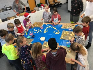 In der Adventszeit haben wir in der Schule leckere Plätzchen gebacken.